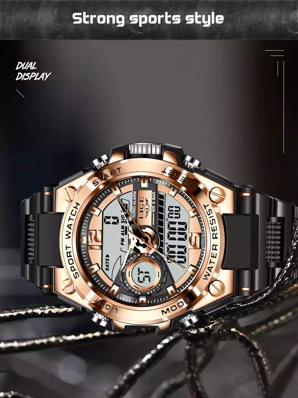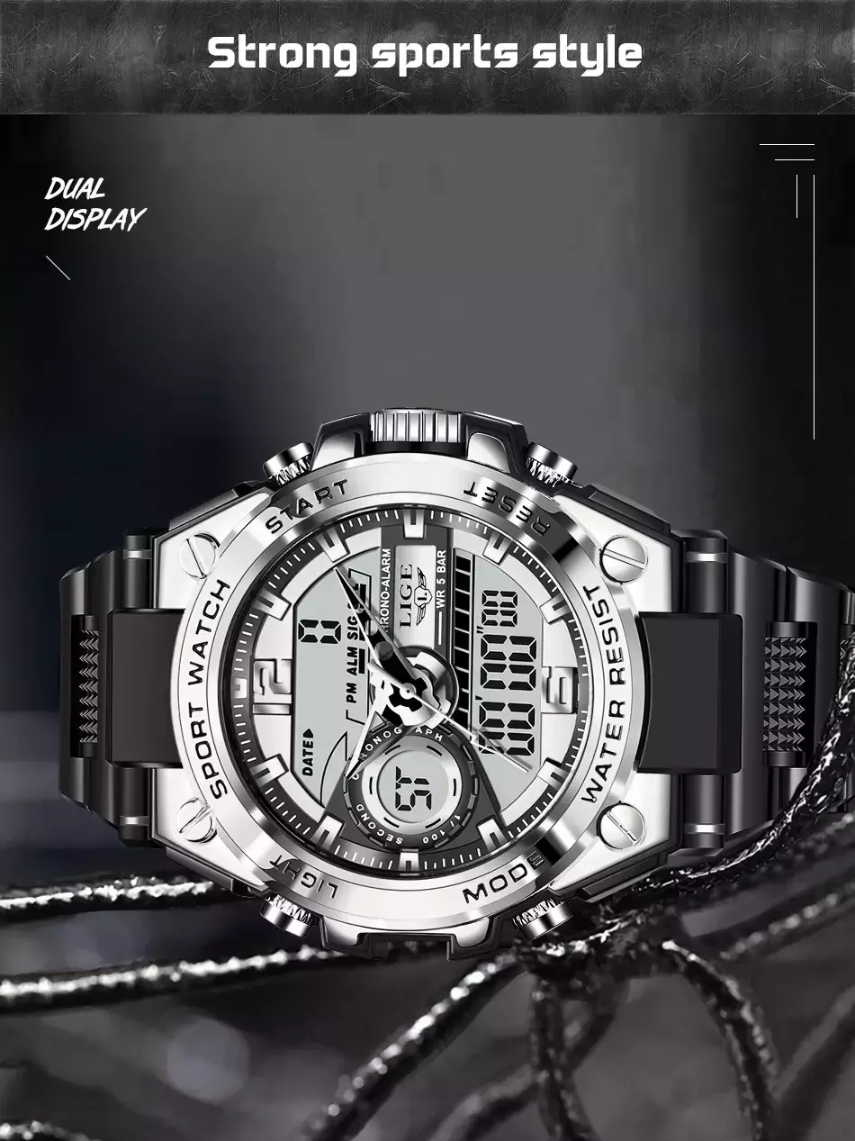 Viva cada desafio com confiança usando o Relógio LIGE SportShield - Militar, Esportivo e Resistente para Uso Diário.