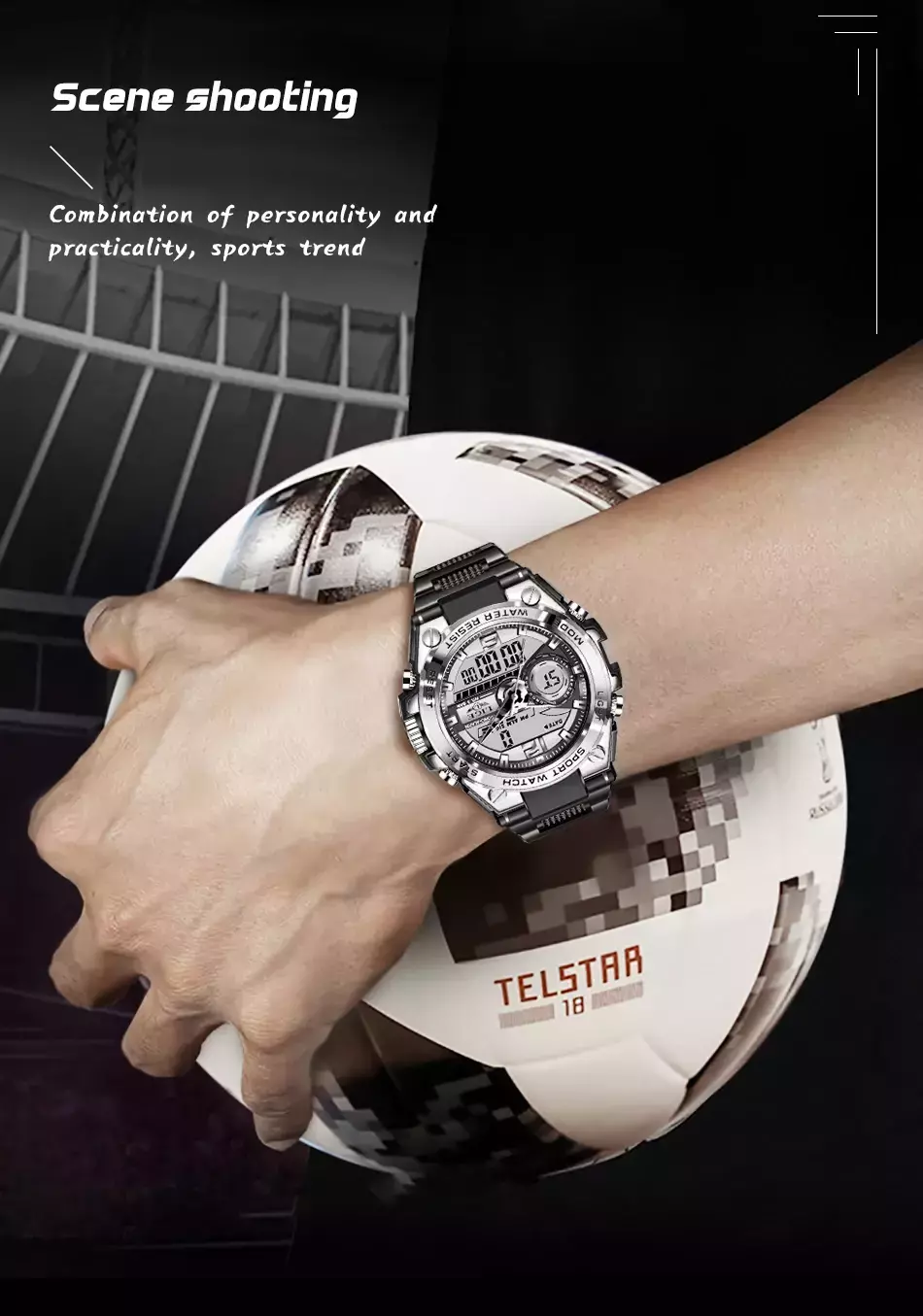 O SportShield combina design militar, resistência e tecnologia avançada. Com dual time digital e analógico, ponteiros luminosos e resistência à água de 50m, ele é perfeito para atividades ao ar livre, esportes e uso diário, garantindo estilo e funcionalidade.