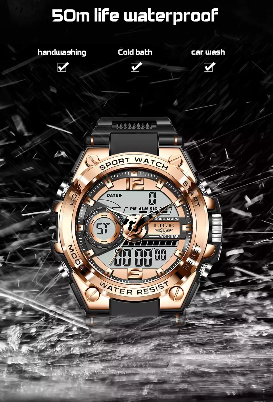 ✅ À prova d’água 50m: protege contra chuva, respingos e uso diário.
